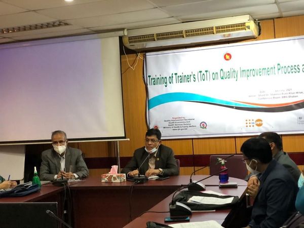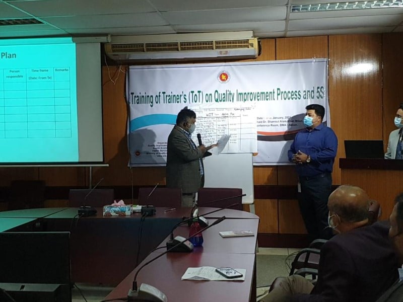 QIS organized Training of Trainers on Quality Improvement (QI) process and 5S with the support of UNFPA. Participants (Superintendent, RMO, Nursing Superintendent, Nursing Supervisor) were invited from nine district hospitals. Venue : Conference Room, BMA Bhaban, Topkhana Road, Dhaka. Date : 11th to 12th January 2021
